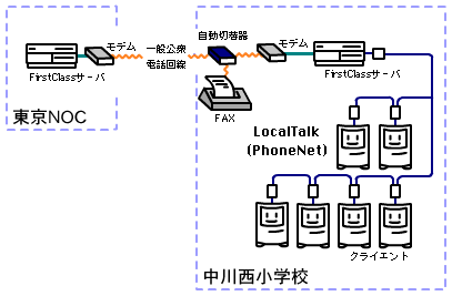 | プロトコル | AppleTalk(内線), FirstClass BBS(外線) |