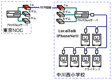 | サーバー数 | 1(FirstClass Server) ISDN/TA×1、アナログモデム(28800bps)×2 |